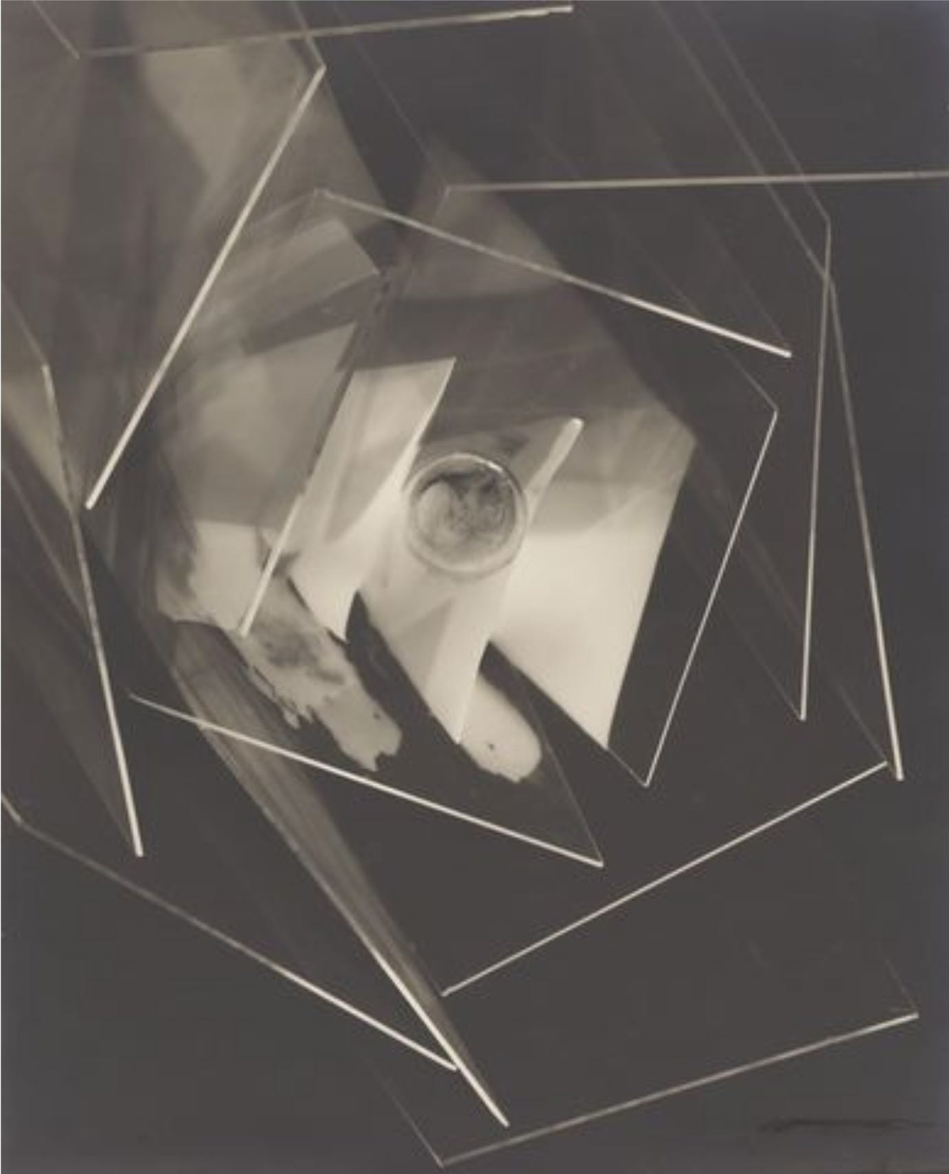 Before my eyes an image began to form, not quite a simple silhouette of the objects as in a straight photograph, but distorted and refracted … In the morning I examined the results, pinning a couple of the Rayographs—as I decided to call them—on the wall. They looked startlingly new and mysterious. – Man Ray