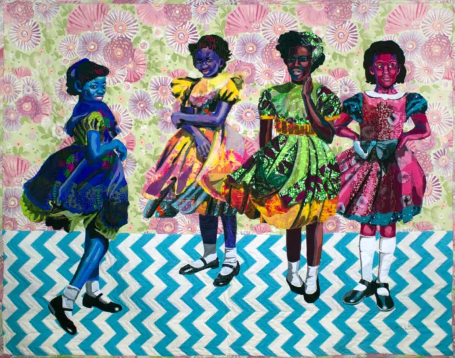 Another artist whose work I first encountered online was Bisa Butler (American, b. 1973). In fact, I was so taken with her work that I made another trek to the Art Institute of Chicago to view their large exhibition of her work in 2021. I expected to enjoy the exhibition but enjoy is too mild a word for my reaction. I was alternately stunned and enthralled by Butler’s vivid quilts. The artist explores famous and unknown Black Americans in her works by finding photographs which she translates into quilts. Four Little Girls, September 15, 1963 (2018) honors the four children murdered in the bombing of the 16th Street Baptist Church in Birmingham, Alabama. Butler celebrates these girls by capturing the lively personalities and energy of the teens through the bright fabrics and patterns she employs in the quilt.